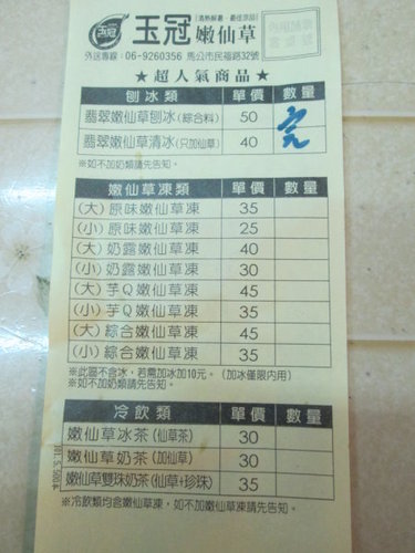 為了要吃到,隔天我們在吃晚餐時同事就先打電話訂,沒想到去到那時老闆說冰沒了,剩下仙草凍,好吧!他的招牌既然是嫩仙草想必仙草應該是他的招牌吧!!