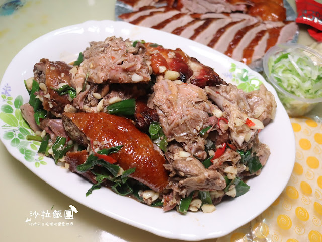 鴨肉卷鴨皮在加上蒜苗及大蒜,雖然吃完嘴巴會臭臭的,但還是很難抗拒這種美味
