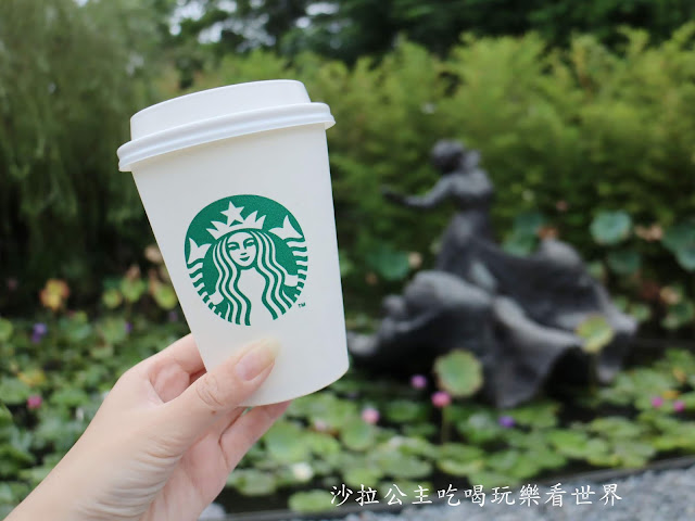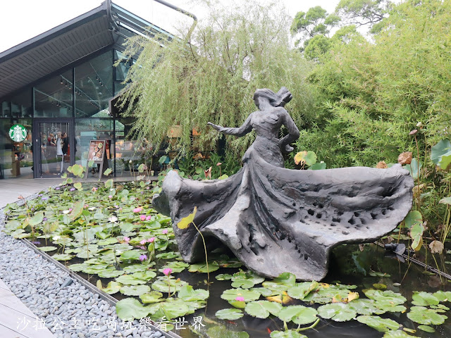 『星巴克(雲門門市)』就在雲門舞集旁邊,門口有荷花池,池中的青銅雕像"旋的冥想",展現了藝術氣息,咖啡與藝術的結合