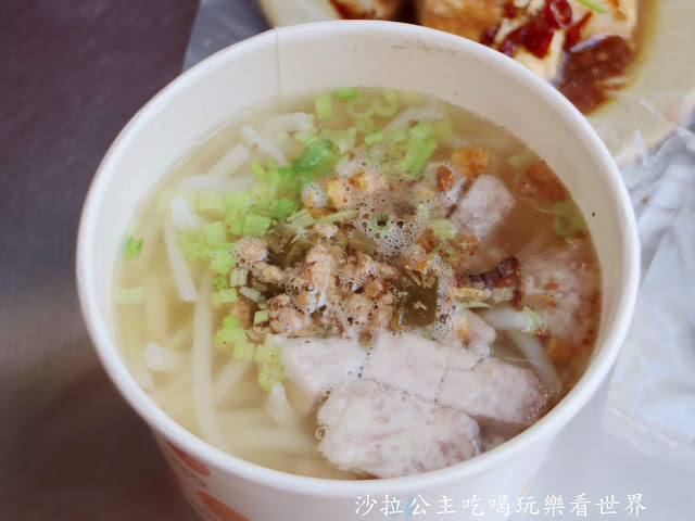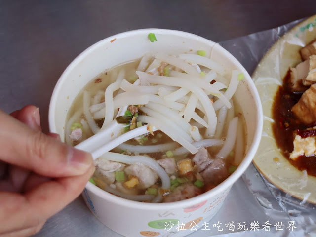 吃完『阿萬鵝肉』牛牛說都來了要多吃幾攤,沙拉就選了『阿萬鵝肉』斜對角,一樣位在三角窗的『晴光芋頭米粉』,之前路過很多次就想吃了