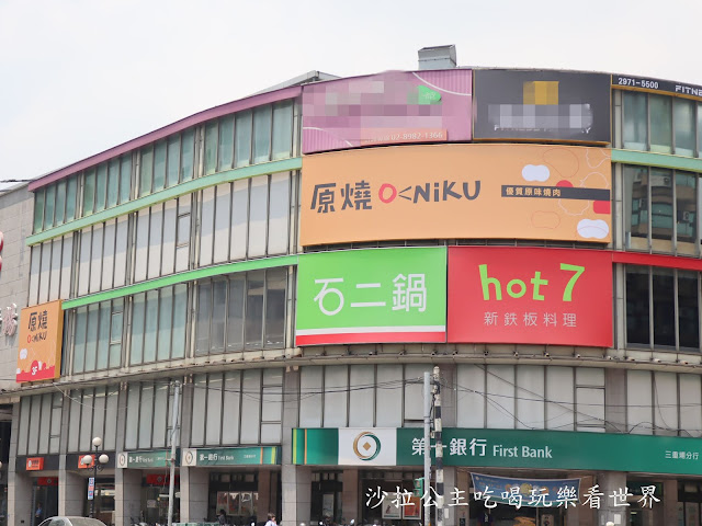 『原燒O-NiKU(三重龍門店)』位在介壽廣場4樓,三角窗上可以看到醒目的新招牌,同棟還有『石二鍋』、『hot7』