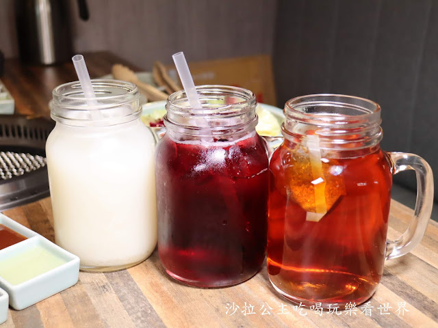 飲料:我們選了可爾必思氣泡飲、葡萄氣泡飲,熱飲是南非國寶茶,飲料一樣可以續