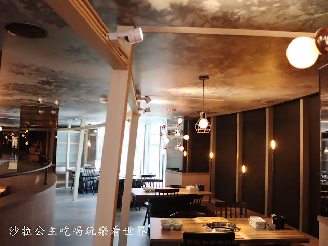 重新整修後煥然一新,以"黎明曙光"為主題,支架融入空間,搭配柔和間接的光源,營造樹影的感覺,就像坐在樹下烤肉