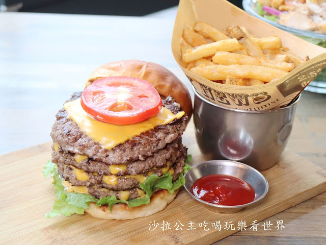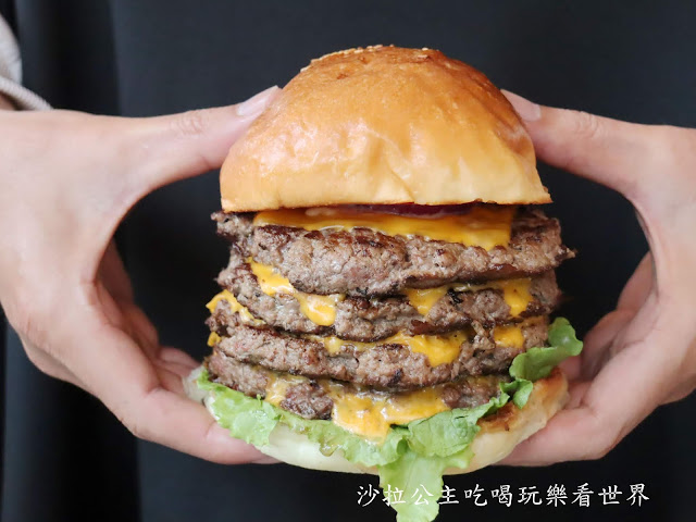 美式雙層起司漢堡會有兩層漢堡肉,我們又多加兩層共四層,超豪邁
