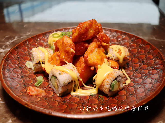 以秘製醃料將雞胸肉醃漬24小時,裹上特製麵糊,香濃的起司醬中有韓式辣醬點綴,吃起來一樣是很有層次的創意火山卷