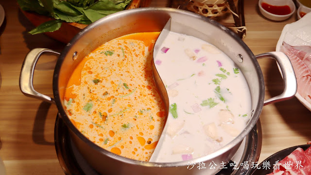 鍋底選擇泰滾招牌冬蔭功鍋、檸檬香茅、椰奶雞,比較多人選擇鴛鴦,可以吃到兩種口味