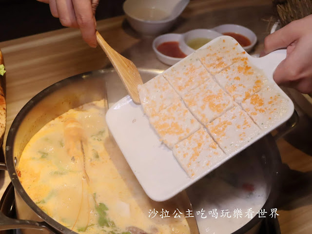 喜歡吃麻糬的沙拉看到麻糬兩個字實在是很難抗拒,QQ的麻糬被包進火鍋料中,不怕沾鍋或煮太軟爛,撈起來還是很有嚼勁