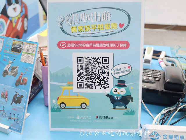租車本身有強制險,若不放心可以在添加保險,沙拉比較龜毛,就另外再加保租車險,早上9點多到達到隔天下午4點還車,保險多加了600多元