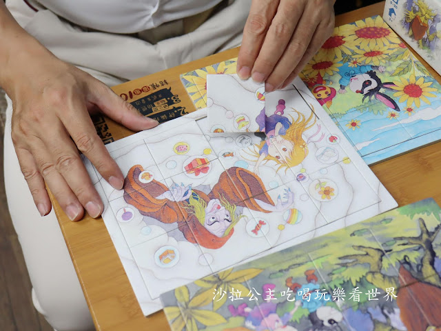 把所有拼圖都倒在一起弄亂後才排,牛牛說這樣他可能沒辦法,所以我們就一盤一盤玩