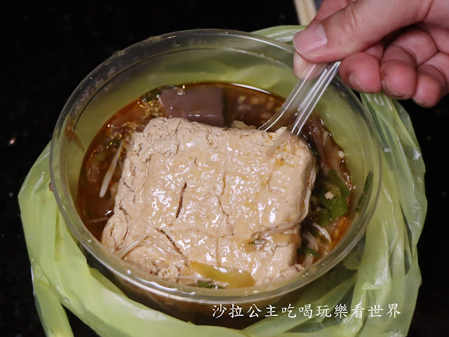 臭豆腐蠻大塊的,沒有剪開湯汁都鎖在裡面,裡面還有加入金針菇,看起來蠻油的,但牛牛還是把湯喝完,佩服
