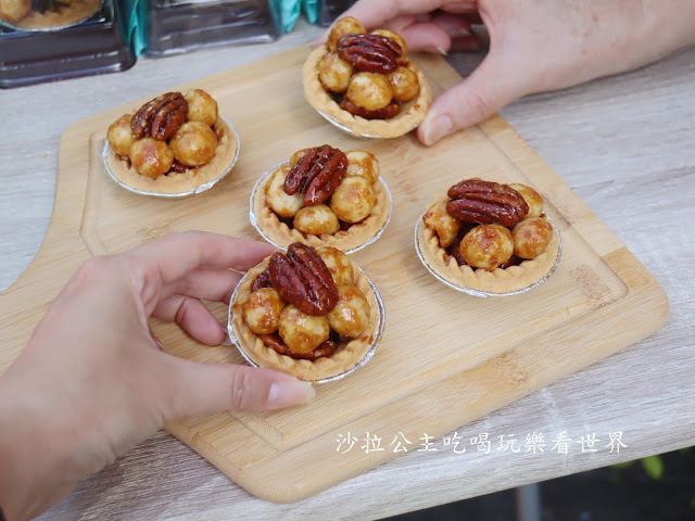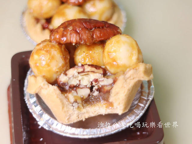 塔皮的底層有一整層的土鳳梨,讓整顆夏威夷豆塔吃起來脆中帶Q,很有層次