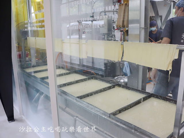 一進去就看到透明化的工廠在製造豆腐,透過玻璃窗可以看到地板、器具都很乾淨