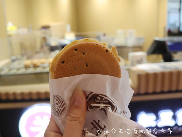 我們買了一個紅豆,一個奶油,紅豆餅上有噴上一點芝麻