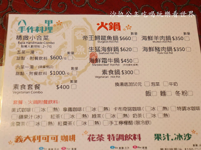 『八甲休閒魚場』菜單,有部份餐點是假日才有提供,所以請依現場提供為主喔