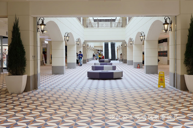『麗寶Outlet Mall』二期一進去就覺得很明亮舒服,空間寬敞,走道中間還有椅子逛累了可以休息