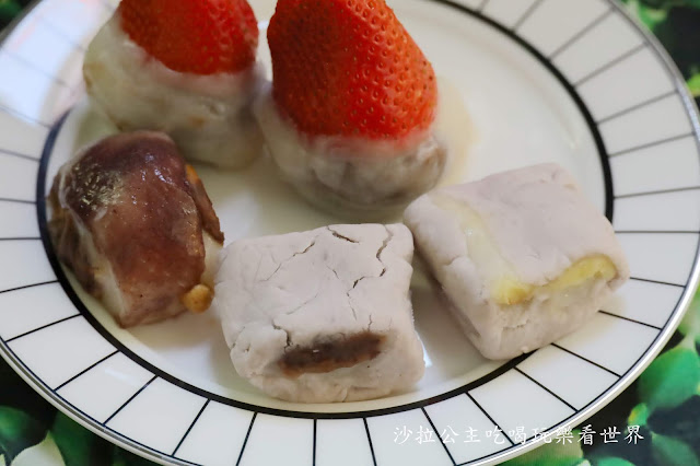 麻糬和草莓之間是紅豆泥,整顆吃下去酸V香甜,一點都不膩口