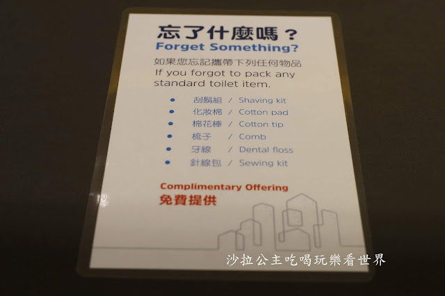 『智選假日酒店』有別於一般飯店將全部備品都準備,房間內提供牙刷、牙膏、浴帽外,另外的備品在入住時櫃台可以免費提供,覺得這樣還不錯,避免造成浪費