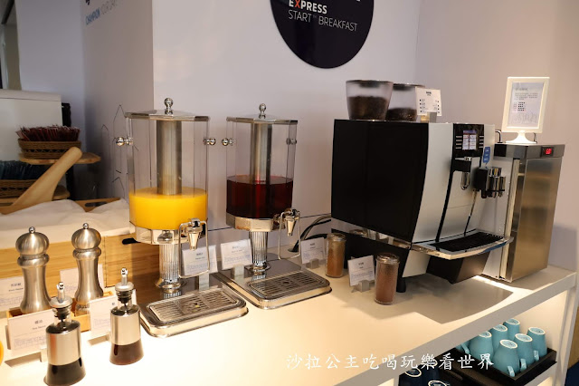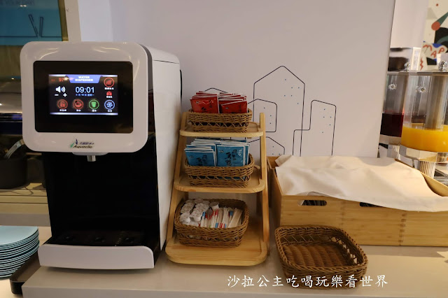 這一區是用早餐的地方,靠牆的座位區有提供插座,前一天晚上沙拉有看顧客也坐在這裡休息,泡個熱茶都可以