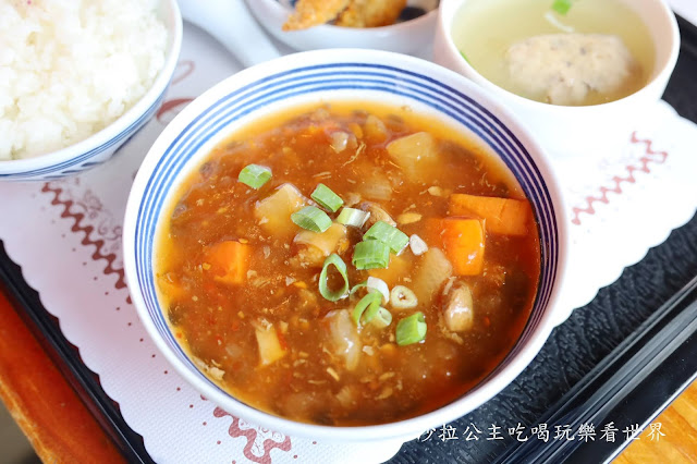 像簡餐一樣有負三個小菜,請依當天供應為主