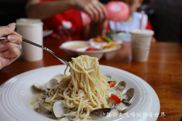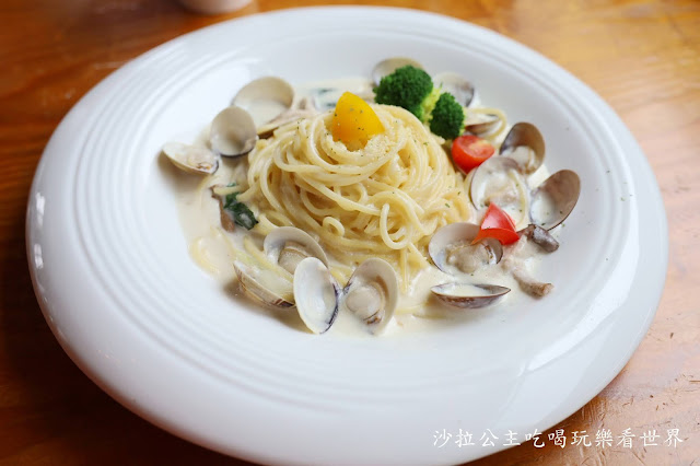 義大利麵的麵條軟硬度適中,吸收蛤蜊的鮮香,味道還不錯
