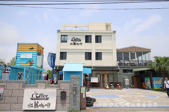 找『水鹿咖啡親子餐廳』花了一點時間,好在他白色的建築物上方寫了"水鹿"我們遠遠看到就順著開過來
