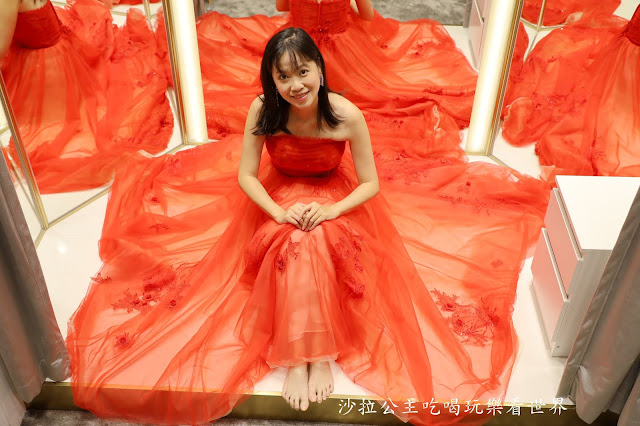"平口蕾絲紅紗漸層禮服"也是我最後挑選的,因為我實在是太愛紅色了