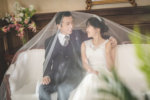 用白紗蓋著拍,好浪漫喔