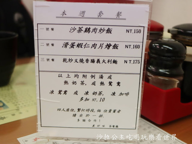 下午5點前往,裡面有坐幾桌了,沙拉就拍某個角落給大家看一下環境,這算是我近期吃過環境最不怎樣的港式