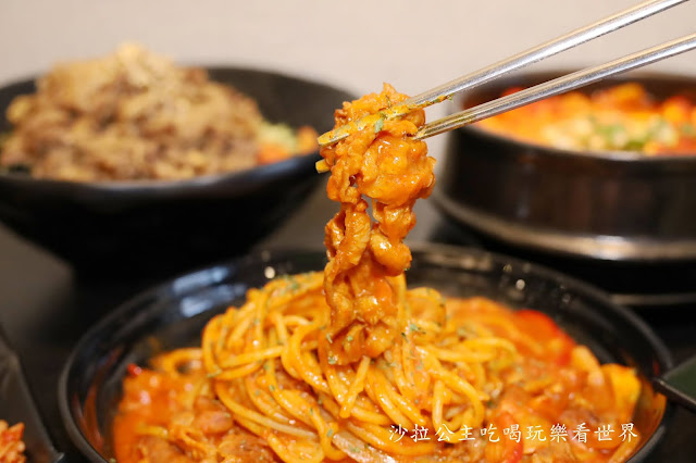 看道菜名就知道這一定是店內招牌,"找含意"就是韓式辣醬與義大利麵結合,搭配洋蔥與韓式牛五花,不說我完全不會覺得他是混搭風