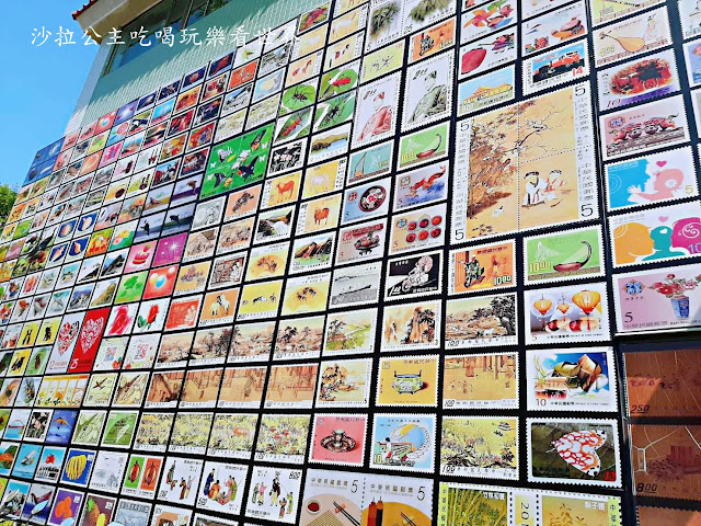 中興郵局第七支局跟一般郵局不一樣,是當地的熱門打卡景點,他的側牆有一整面郵票,聽說都是發行過的,共有300多裝,沙拉以前也有集郵的習慣,看到這些郵票覺得好懷念唷