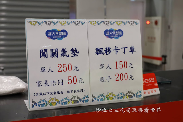 闖關氣墊單人250元,3歲以下兒童限由一位家長陪同,家長50元