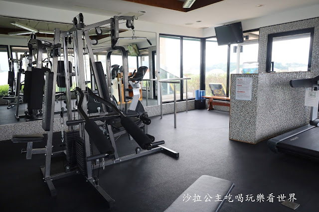 健身房也在頂樓,整面落地窗,運動時還可以看到外面的綠化花園和遠處的山