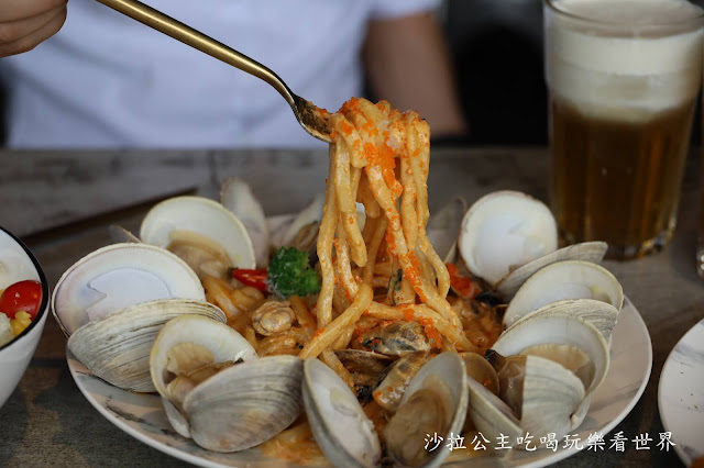 身為資深蛤蜊控看到這盤"冠軍蛤蜊麵",我心花開了,因為菜單上寫的大蛤蜊給的是牛奶貝耶~~