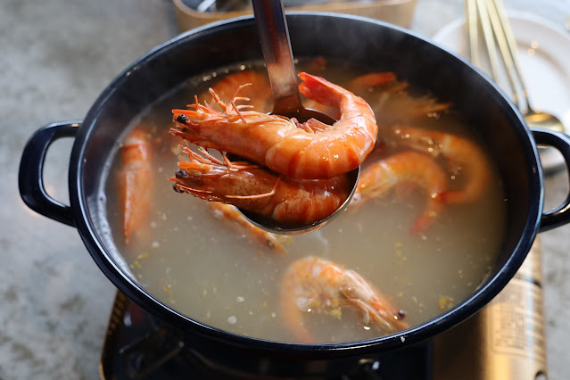 建議一開始先煮龍蝦、蝦子,這樣湯頭會比較鮮美