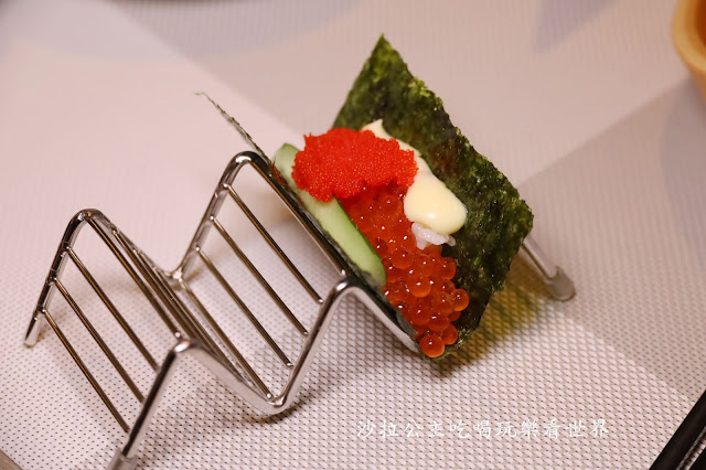 朋友拿了一個鮭魚卵的,用料一點不手軟,鮭魚卵都要像瀑布一樣流下來了,而且盛裝的容器也跟一般的不同,真是太可愛了