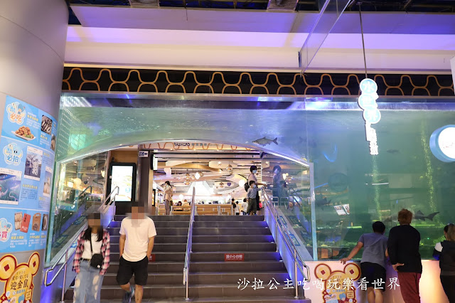 一樓通往二樓的樓梯,設計了大型海洋水族箱,雖然說跟海洋館肯定差很多,但在休息站裡面有這個還是很厲害了