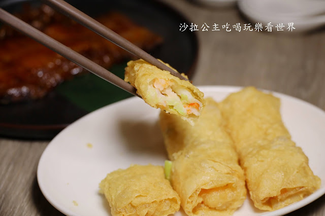 特選腐皮油炸至酥脆,內餡包入飽滿碎蝦仁,鮮嫩多汁