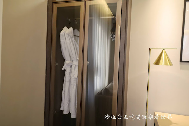 尊爵房多了一個衣櫃,棉質浴袍放在裡面,房內空間大,穿著浴袍在房內行動感覺就像在家一樣