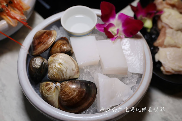 點"金門高粱酸白菜"湯底的朋友建議一定要點蛤蜊、天使紅蝦,我一開始喝湯時覺得湯底的味道好像沒有很鮮明,加上海鮮後,酸白菜的甜被提出來,變爆炸鮮甜,他們家的酸白菜不是屬於白醋酸嗆那種,喝起來是很舒服的