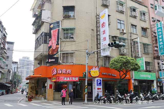 永和火鍋『肉出微笑』光看到店名就讓我露出微笑了,『肉出微笑』離永安市場捷運站步行約15分鐘,騎車來旁邊機車格多很好停,開車可以停在50公尺處的秀朗國小收費停車場,交通還算便利,位在三角窗的『肉出微笑』非常顯眼