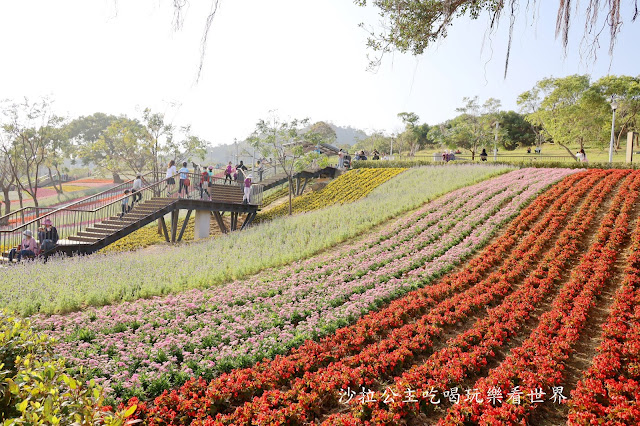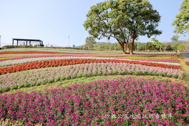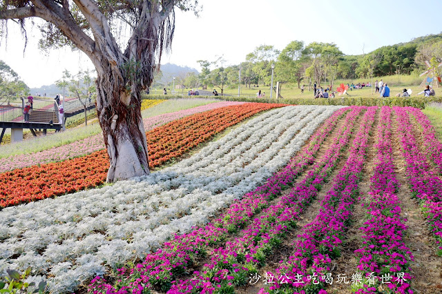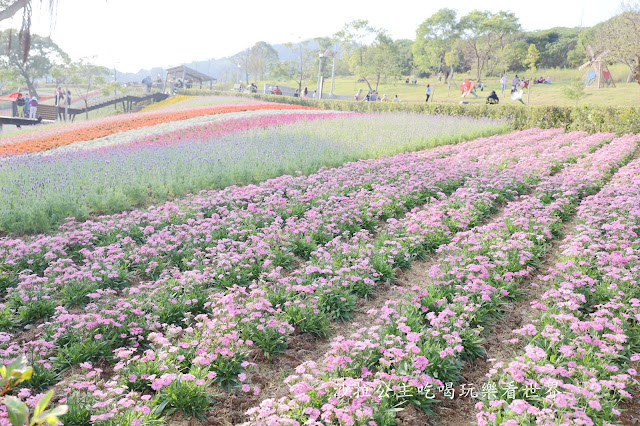3.5萬盆的薰衣草、五彩石竹、銀葉菊、孔雀草、 四季秋海棠、等多色系花草,仿照北海道富良野視覺感的花海,打造出繽紛的"彩虹花毯",今年不能出國,大家來這裡逛逛真的很棒