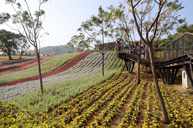 不過下午來就是有個缺點,大家站在階梯上拍照,影子都倒印在花海中了