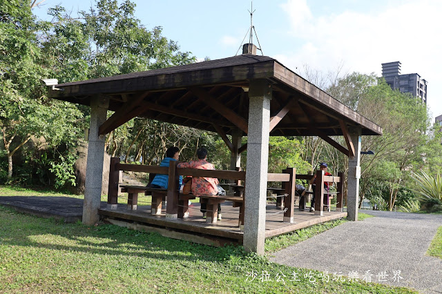 這裡有涼亭、桌椅,很多人都直接在這裡野餐,小孩還可以在草地上跑跑,感覺還不錯