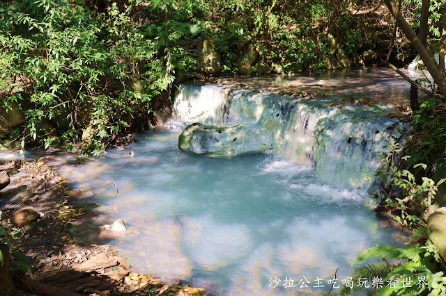 『小隱潭蕨園』是到陽明山花鐘一定會路過的景點,去年年底沙拉曾默默路過,孰不知這裡面那細細流水就是網美秘境,擁有Tiffany藍瀑布,溪水呈現乳白色