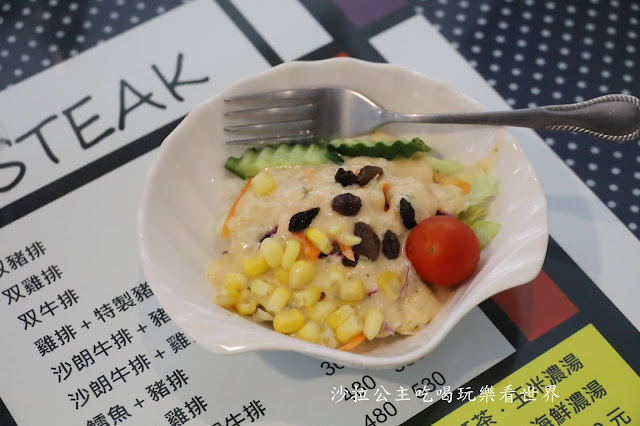 全餐的玉米濃湯會升級成酥皮濃湯、多一份生菜沙拉