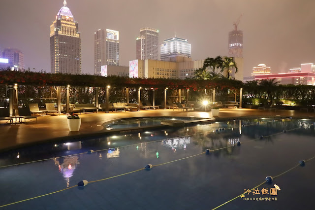 台北少見的獨特戶外溫控游泳池,身處熱鬧市中心,有著綠意盎然的空中庭園,彷彿來到熱帶島嶼度假,本來想隔天早上再來拍,結果雨下太大,拍起來都濛濛的就放棄,夜景也是很美的,而且是溫水游泳池喔