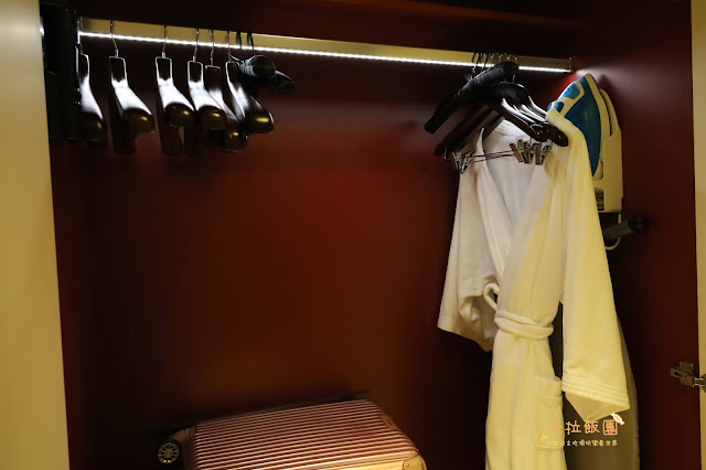 房內有浴袍、拋棄式拖鞋、保險箱、熨斗及燙衣板,各類型的顧客都有照顧到
