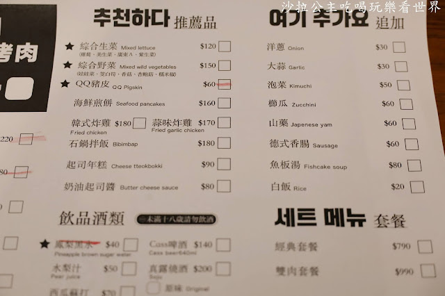 『新山韓國烤肉』菜單