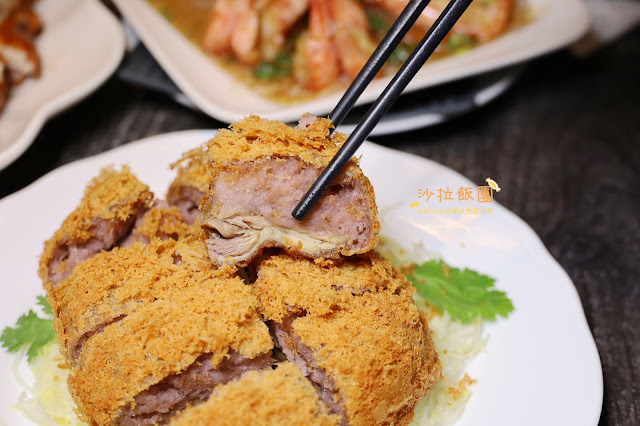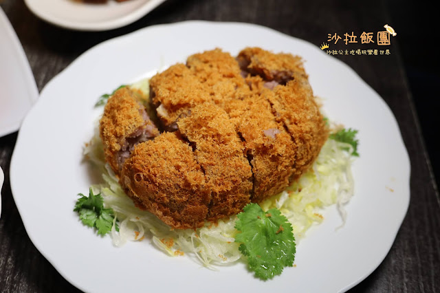 端上桌的時候就聞到濃郁的芋頭香氣,看上去就像塊炸豬排,炸的蓬鬆香酥