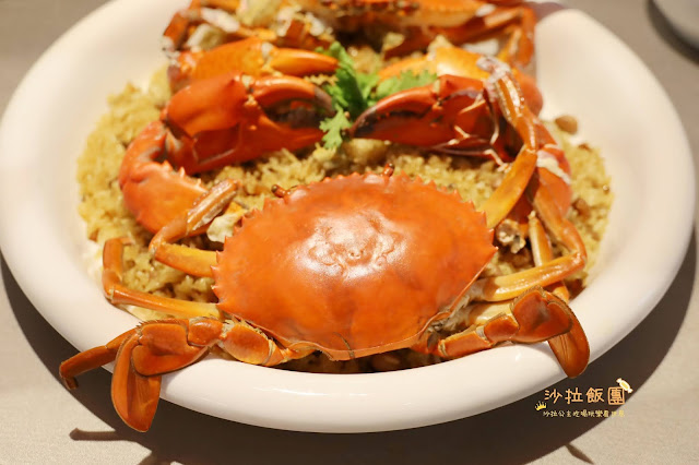 兩隻大大的紅蟳,霸氣的躺在米糕上,蟹螯上餐時就已經敲過,方便食用